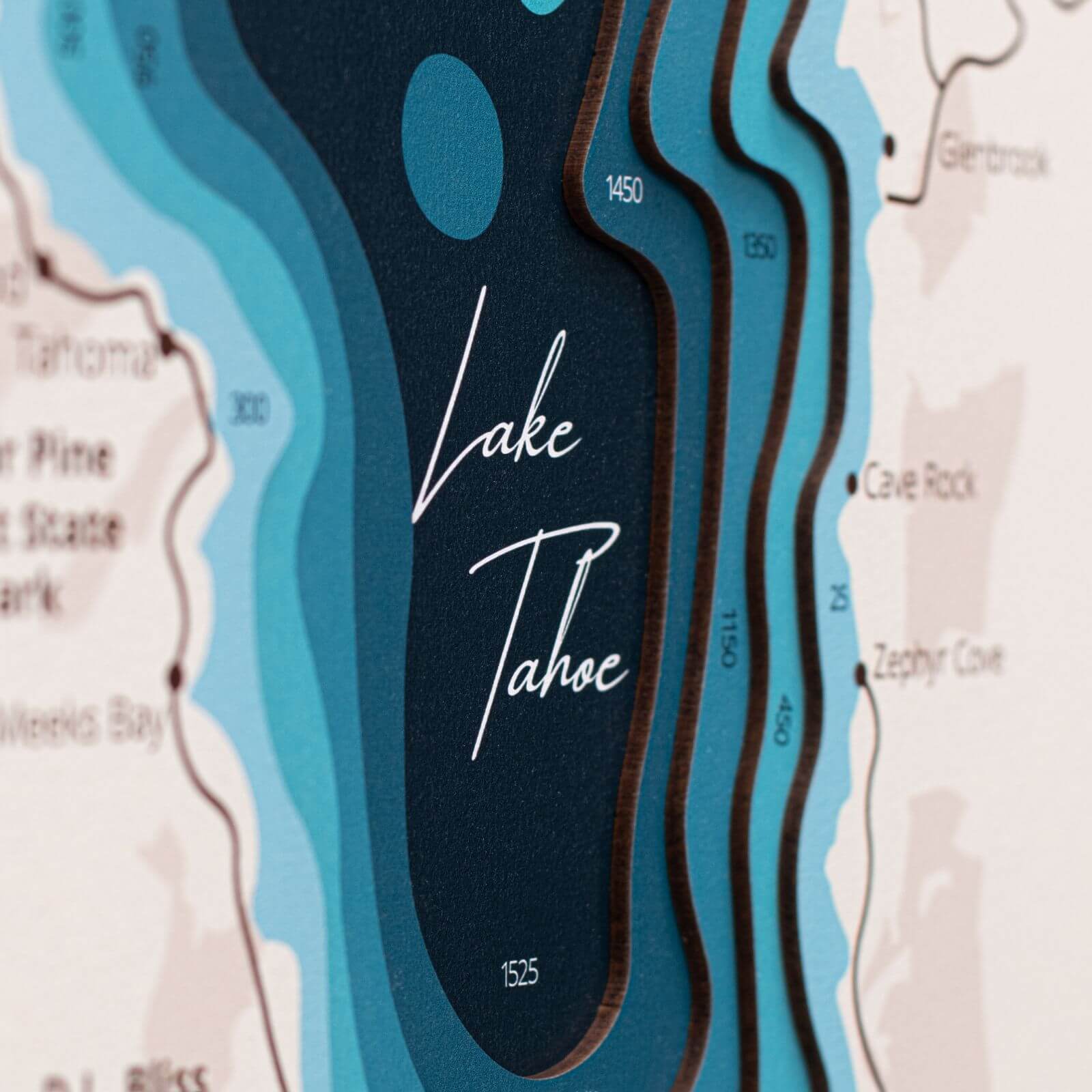Lake Tahoe Wood Map | 3D Nautical Chart, 16″ x 20″